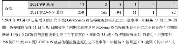 高端(統計至20210908)共打了69萬劑 死亡10人 百萬死亡率14.5% (尚在統計誤差範圍內!)