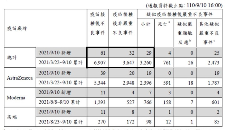 等9月底第2劑打完得到的數據會更真確些,因為有的疫苗是打第2劑會更嚴重(如默德那)