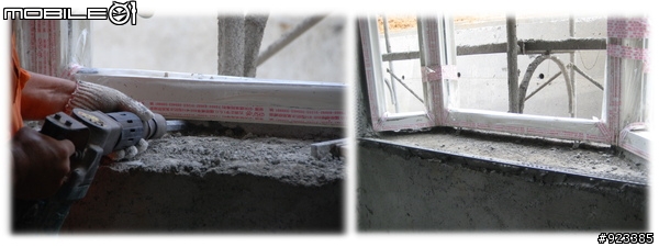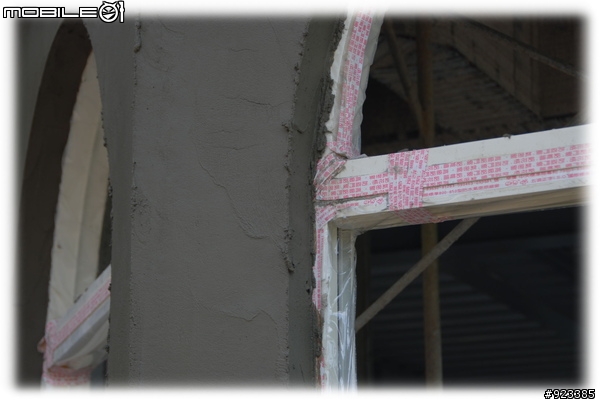 1. 確實做到窗框填實 (工頭親自敲打, 一有不對勁, 先敲破再說.), 的確細心, 有些稍為聲音不同的地方, 就請泥作老闆過來確認, 並當場敲破. (雖然有的我們也聽不太出來 )