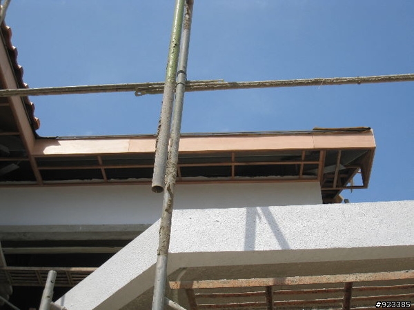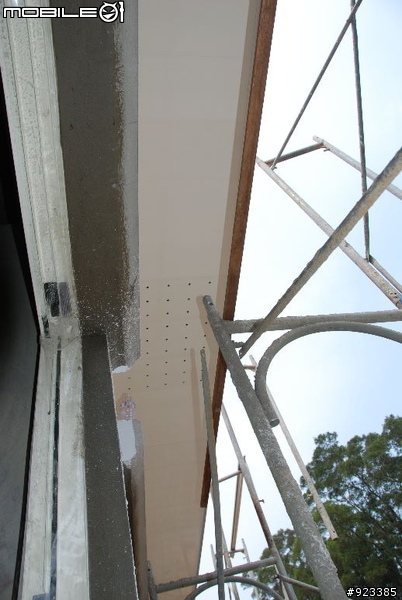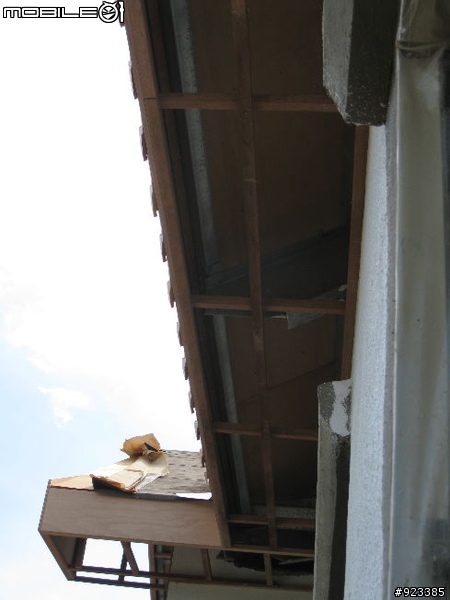 停了三周沒有PO文,因為屋瓦做到2/3 還沒收尾.再等破風板破風板木工師傅再等外壁油漆油漆師傅再等我們(業主)決定顏色.最後決定破風板先上, 屋瓦來收尾,再上油漆了.先PO上屋外破風板的開箱文這個設計原意是讓屋頂層有洞氣孔.讓熱氣可因對流而帶出.除了讓二樓降底溫度外,也可保持乾燥.全文可上破風板 01破風板 D2先以鋼釘固於柳安木角材在牆面/C型鋼再以30分釘子將五分防水夾板收邊立起才半天的工作時間就包好全部的防水板... 速度很快左邊靠外頭的小屋瓦還沒有施做等破風板都做好才能繼續進場完工接著是要上這一片片白白的板子, 這就是陶磁板劉老闆說是日本進口的 是X澤的......非常貴的呢!橫切面看來, 這陶磁板還有點像水泥板屋簷下的防水板變色了白色的正好與底漆相呼應屋後這也是白白的一條切割好的陶磁板固定在防水板外層疑! 猜猜看, 師傅再做什?8寸寬鑽3孔, 共5排一個透氣板共用了3片塑鋼板共有45個洞洞給換氣用後邊屋子長度是14.65M, 做了五個透氣板老闆說太多會不好看, 夠用就好...接下來應該是屋瓦收尾.等屋瓦完工,再整理 PO上來了.等不及的大大, 就麻煩移駕到小弟的Blog