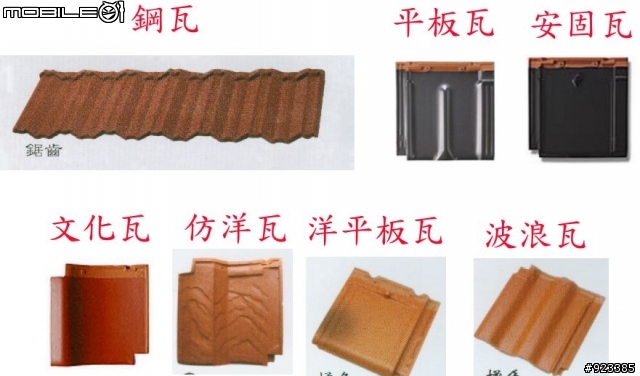 最近在鋪設屋瓦.一開始並無想太多.只要防水做好來, 選個顏色就好了.誰知等到要選時, 才發現瓦的學問這樣大.瓦片/瓦紋/瓦色/瓦型/..........到底是我們太龜, 還是要求太多.睡覺都夢到瓦為何其它業主都沒有選瓦的困擾呢?選了快二個月, 還是沒有進展,沒錢還要搞個歐風住宅,真是找罪受.來個日式風的應就沒這個問題 =>很好選眼看已經快停工一星期了,終於決定選個經濟實惠的.來看看不同瓦片的比較瓦片種類非常多, 有其不同的形狀/大小/顏色還分耐壓力 / 抗風力/ 吸水率/防火性.簡單的比較是鋼瓦與陶瓷瓦.基本上鋼瓦最便宜但缺點也不少, 端看重點是要什麼下面以陶瓷屋瓦來說明:1. 防水功能 : 一般設計屋面應考慮到防水性, 有不同的作法, 不管那種陶瓷設計是多有排風水導水瓦型, 再塗上光滑的釉料, 不易透水, 結構上再配合底部防水材料.2. 耐火功能 : 1000度以上高溫窯燒而成, 表面阻燃性極高, 不會引起屋面3. 隔熱功能 : 通氣性與斷熱性,通氣性是指鋪蓋後瓦底與屋面留有適當的空間,引導空氣對流;斷熱性是指瓦體釉面反折日光照射,吸熱量低4. 隔音功能 : 一般來說重的材料隔音性必定較高,陶瓷瓦重量約50kg/m2,此均衡的重量在屋頂上有極高的隔音評價5. 抗風功能 : 厚重結實,而鋪蓋後鄰瓦相扣設計,屋面連成整體,6. 耐寒功能 : 耐寒功能在寒冷及晝夜溫差大的地區,一般屋面建材常易凍破或龜裂,但在台灣平地應影響不大.7. 美觀功能 : 這就要看屋型及配合的屋瓦, 陶瓷瓦比較有立體感.8. 耐久功能 : 使陶瓷瓦的使用壽命提高到50年以上從其它面向來考慮不同的施工法與功能差異.1. 施作工法與抗風力:乾式與溼式施工法. 絕大部的瓦片都適合二種施作工法, 沒有特別區分. (建商是建議我用乾式工法, 防水與通氣功能會比溼式法好, 但成本較高).抗風力就會取決於瓦片本身的設計及施工方式. 瓦條的功能是將瓦片鎖在瓦條上, 可避免因強風而被吹起, (可以想像一下, 這是整排鎖在屋頂上, 而非一片一片的.) 當少了瓦條時, 就只能靠瓦片本身的卡榫了. 不管瓦片本身的上榫也多神, 建議還是要使用瓦條 + 瓦片本身的設計與重量.2. 防水: (強烈建議一定要作, 房子是住一輩子的)可分為 "屋底防水", "屋瓦防水線設計"屋底防水:i. 乾式: 五分防水板, 溼式: 灌水泥者可塗上一層防水漆 / PU 或 彈性水泥ii. 鋪設防水毯. (1.6mm/ 2.0mm/3.0mm), (2.0mm 一坪 250, 一般應不會超過 100坪, 頂多 25000)iii. 一般灌水泥者不加水毯, 但不管是乾式或是溼式,還是建議 i +ii (當初如果我是用水泥灌的話, 會加 防水材料 + 防水毯), 因為屋頂漏水最麻煩了.iv. 洩水條的作用則是讓水不會這麼容易積在那, 快速流出.屋瓦防水線設計:i. 可看以下二者的比較.ii. 東X的西班牙瓦設計比較深也最好 (當然價格也最貴了)所以原則上水的動線會是 屋瓦(防水性好) => 真的水跑進去也有防水毯 (及洩水條) => 防水毯破了還有防水材或防水板 ==> 即使水泥屋頂有些許龜裂也應不會滲水.3. 瓦型與瓦片.除了功能性以外, 再來就是選適合/配合的瓦型與顏色. 歐式風建築千萬不要選平板瓦, 應選擇有立體的瓦片較為適合. 不過還是要看屋型去配合.價格來說, 以我的屋瓦面約85坪計算, 價格從50萬~160萬, 只能選個 CP值高的屋瓦最後入選名單請上Blog西班牙瓦 v.s. 仿洋瓦等屋面鋪完, 再來寫乾式屋瓦開封文.