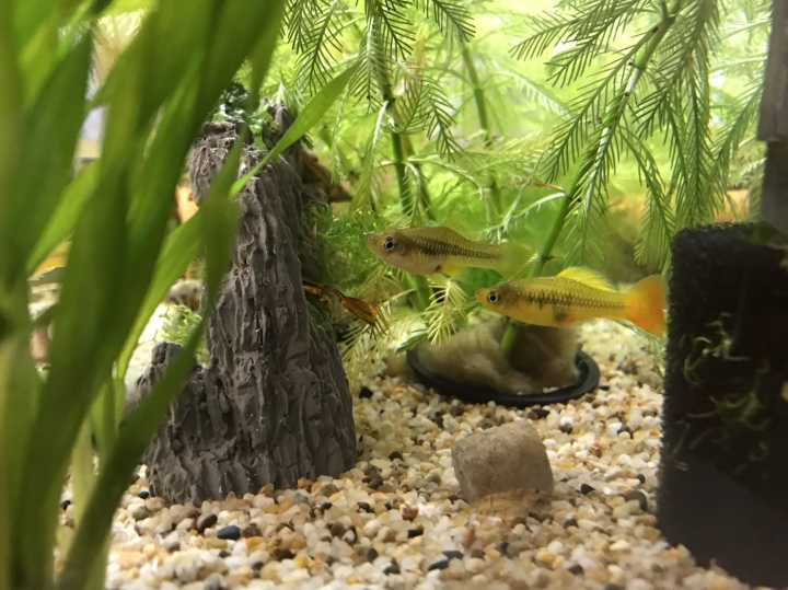 在水溝抓的魚,本來以為是大肚魚,但看起來不像.除了有微紅的尾巴,還有比以前養的大肚魚游的快,也比較不會在上層游,身上好像也有斑紋.有人知道嗎?謝謝!