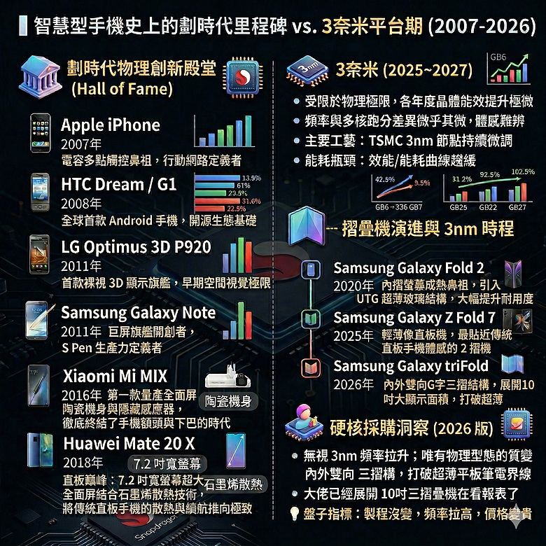 高通Snapdragon 8 Elite (正4代) 於 2024 年 10 月正式將行動平台帶入台積電 3 奈米時代。然而,根據半導體技術地圖顯示,下一代指標性製程節點 — 台積電 2 奈米(Snapdragon...