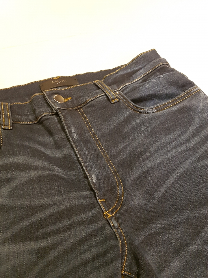 今天再來分享一件 前一陣子感恩節的戰利品 AMIRI MX1 Dark Indigo jeans這張光線不是很好,顏色有點偏黑,這件褲子應該算是比較深色藍染的顏色刷破的地方 裡面都用真皮的補丁強化,算是滿特別的...