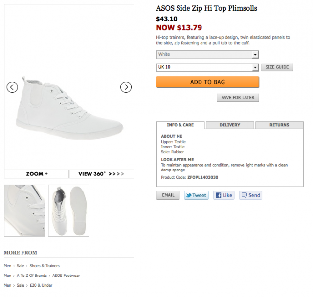 [開箱] ASOS Side Zip Hi Top Plimsolls 入手照片分享