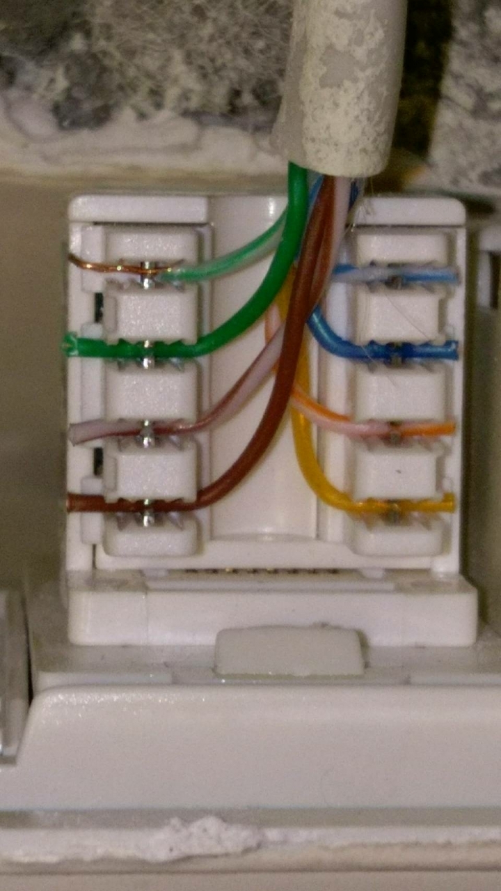 請教一下各位神人,小弟最近搬家後使用原本屋主留下的牆壁網路孔後,發現網路連不上去,打開牆壁後檢查發現好像網路的塑膠部分都沒有剝線,不過也有上網查過確實是有人這樣硬擠進去是ok的,想請問各位神人這樣是正常的嗎,還...