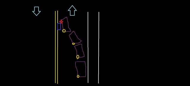 發生的結果如圖:紫色框框 是我的車輛藍色框框 是撞上我的機車紅星星 是撞擊點(左前葉及左輪圈)黃圈圈 是我的方向燈號淺藍色箭頭 是行進方向事情經過:我由車道偏右邊打左方向燈要回到車道中線,時速約20-30km...