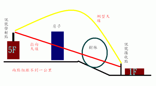 因為小弟有時會住在農舍當地小偷猖獗還有一些需求電話 第四台 都因偏僻不願意架設!所以想架設高功率的基地台傳送訊號但本身對此不是很了解想在這邊請問這樣有沒有可能??發射點是五樓接收點是1樓的平房中間有1棟房子跟一...