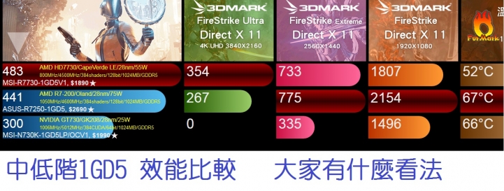 中低階 顯卡1GD5 C/P值 請益 要比的就是這三張 其他再高一階的及內顯不在這篇討論範圍
