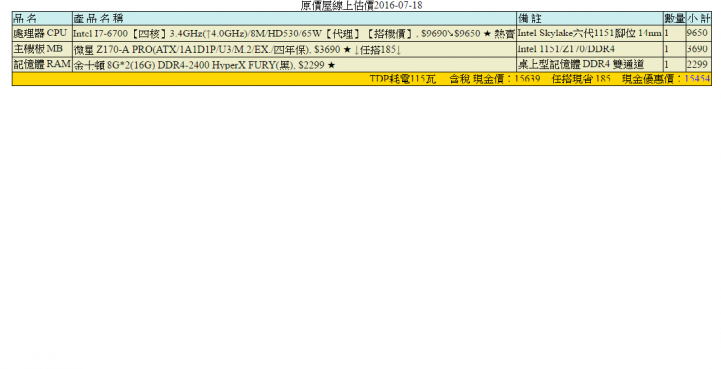這次想單純升級CPU+主機板+RAM我有大概配了一下!可以幫忙檢視一下嗎?