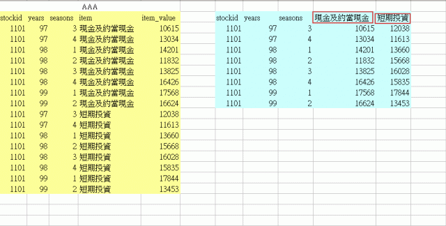 小弟有一個資料表AAA放在sql server中,想透過SQL語法,將其中資料重新排列,小弟覺得是用SELF JOIN的方法,可是效果不理想,可能是小弟的語法有些問題其中item中,有幾十個科目名稱,但是小但想...