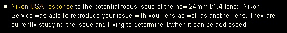 繼小黑六的鐵屑後,當紅廣角大光圈也出現疑慮:NikonUSA confirms focus issuehttp://forums.dpreview.com/forums/readflat.asp?forum=1...