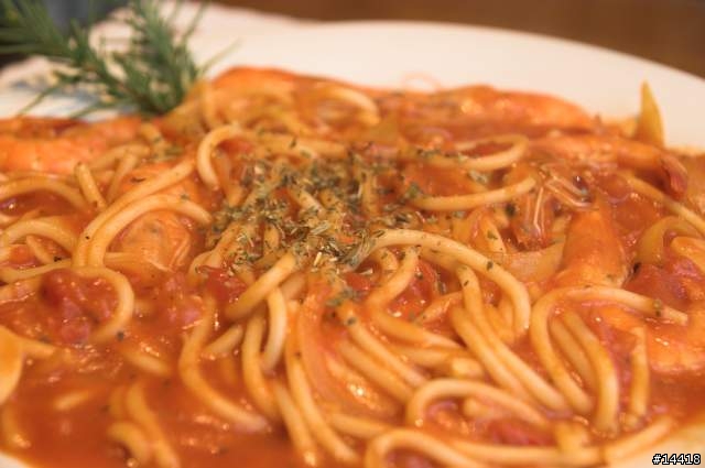 接著是主菜,這是義式茄汁鮮蝦麵